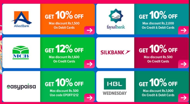 - Collectible Bank Voucher: You can collect your bank voucher from the bank discount banner and proceed with your shopping. When you enter your card number at checkout, your bank collectible voucher will be automatically applied. These are stackable collectible vouchers and are only applicable on bank discount days.