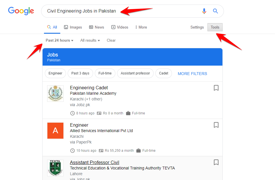 When you type Civil Engineering’s jobs in Pakistan, you can also write your city name instead of Pakistan to find the jobs.