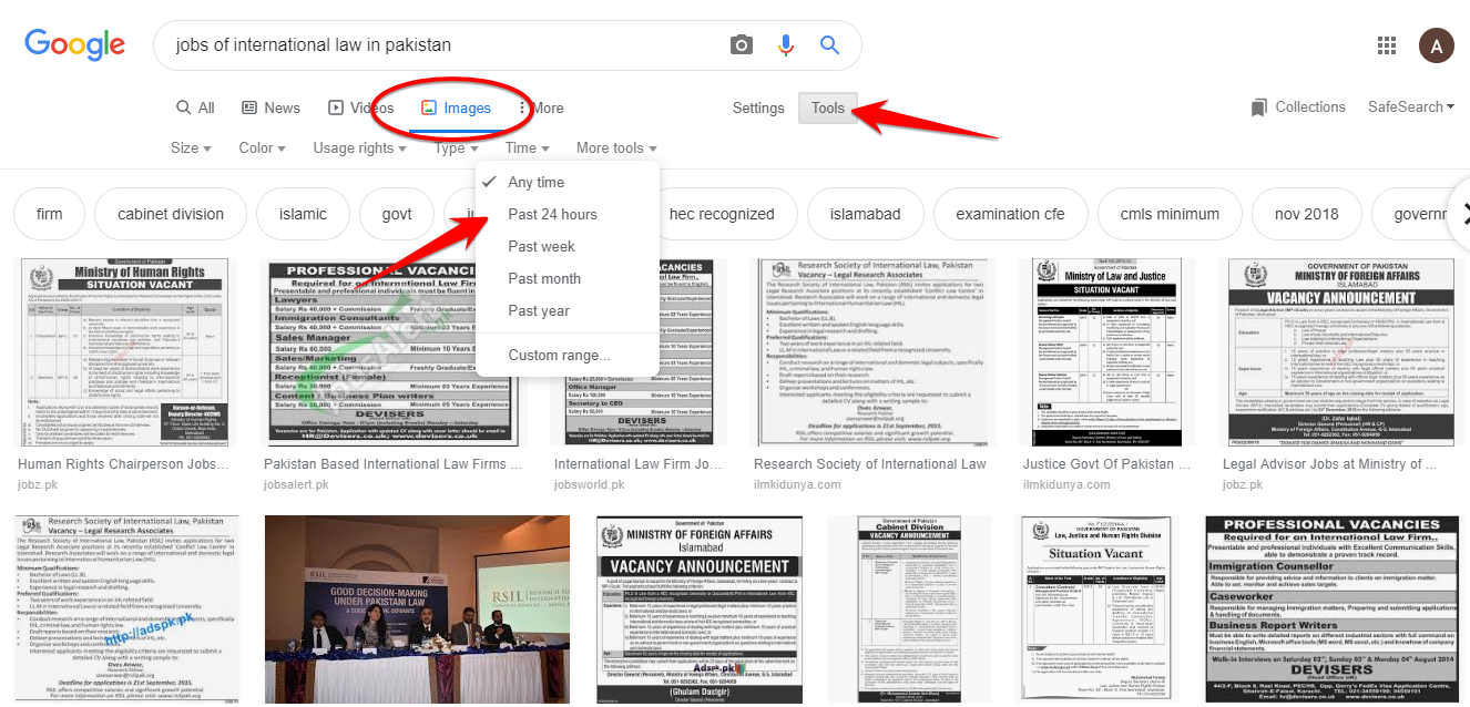 When you type the International Law’s jobs in Pakistan, you can also write your city name instead of Pakistan to find the jobs.