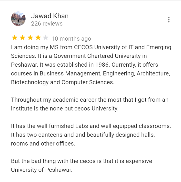 CECOS University of IT and Emerging Sciences is established at F-5, Phase-6, Hayatabad, Peshawar.