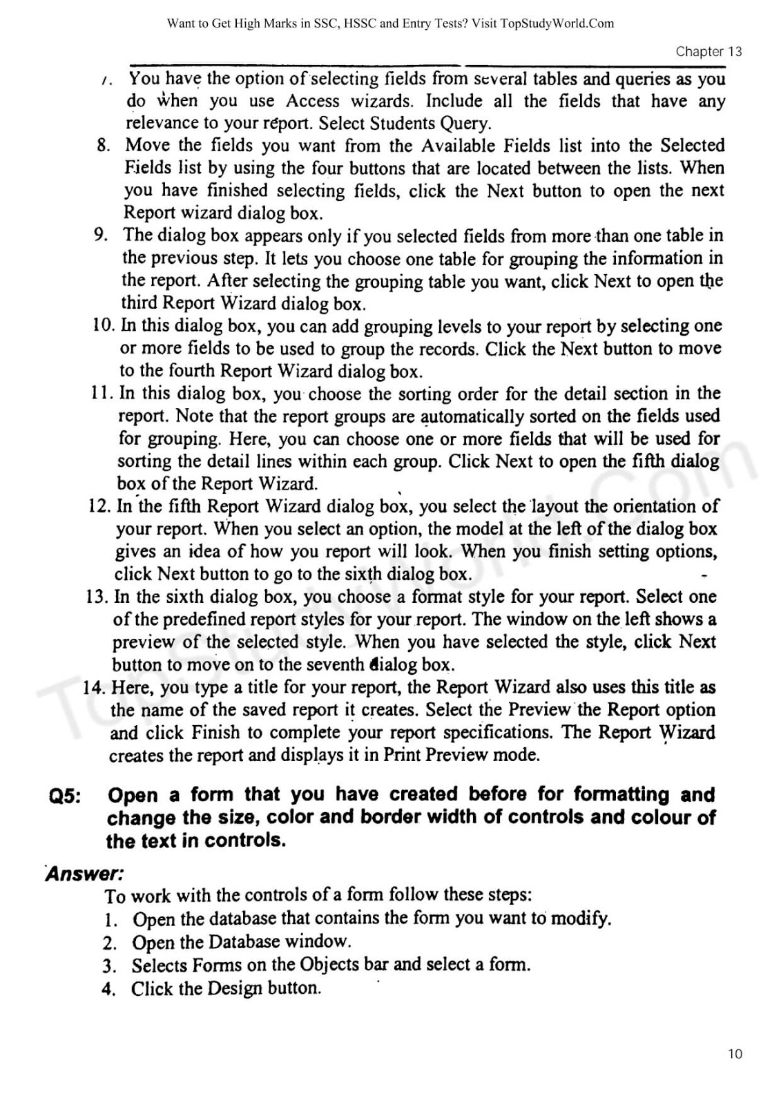 Chapter 13 – Creating Reports in Access Notes in Images Format