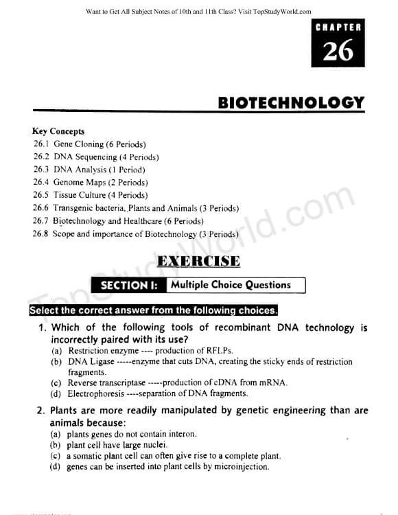 Are you looking for Chapter 26 “Biotechnology” notes for 12th class in the PDF and images form?