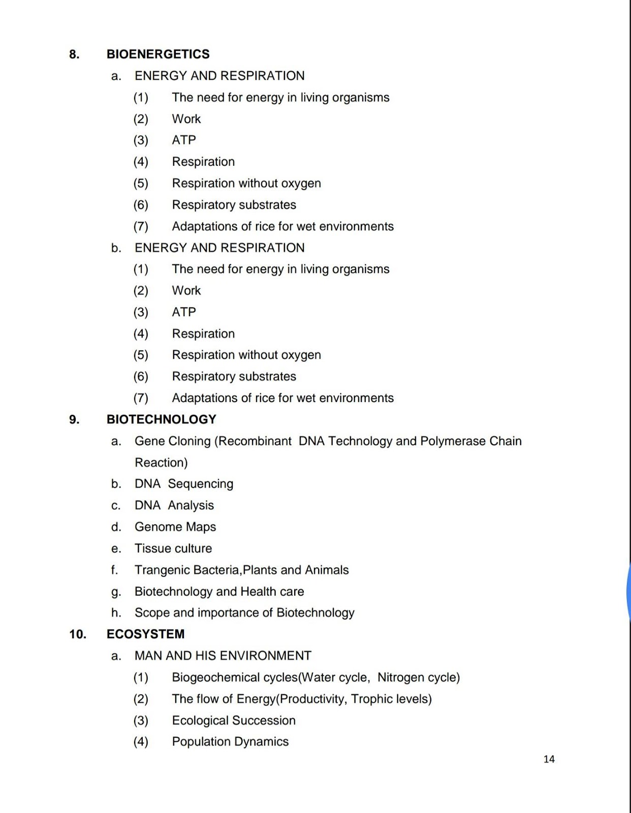 This syllabus has the information for Chemistry, Physics, Biology and English subjects. You can download or you can view online.
