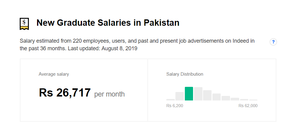 The average salary of a fresh graduate Macroeconomics is between Rs. 20,000 to Rs. 30,000 per month in Pakistan, according to Indeed Pakistan.