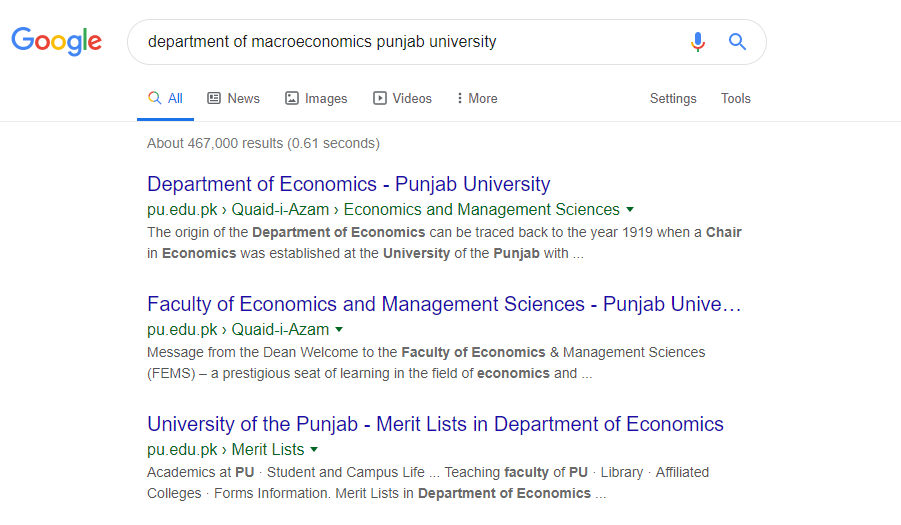In order to find the department of Macroeconomics in any university, just type Macroeconomics+ university name like